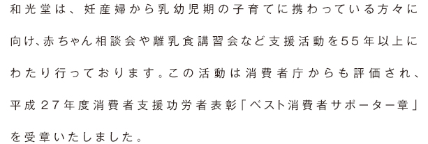 全國(guó)のドラッグストアやベビー用(yòng)品専門店(diàn)などで、子育てをしている保護者や妊産婦の方に向けた栄養相談を行っています。栄養士の資格を持つ従業員が一人ひとりに合ったアドバイスをしており、相談者は毎年延べ10万人以上にのぼります。
