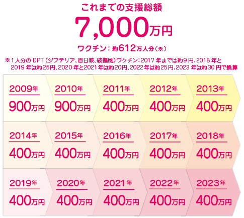 より多(duō)くのかけがえのない命が守られますように。そんな願いを込めワクチン接種支援や復興支援サポートを行っております。ワクチン接種に関しましては継続的に支援を行っており16年目を迎えます。