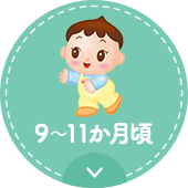 9か月頃からつかまり立ちを始めたり、伝え歩きができるようになる時期です。