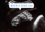 五本の足の指、骨もはっきり映っています。超音波では足の大きさも測れます。(妊娠30週)